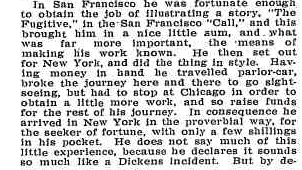 Having money in hand he travelled parlor-car, broke the journey here and there to go sightseeing, but had to stop at Chicago in order to obtain a little more work, and so raise funds for the rest of his journey‘.
