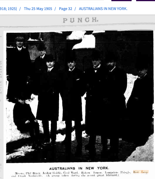 Unfortunately the photo is very dark, but it was published in PUNCH newspaper Australia in May 1905.. Well dressed and very interesting bunch of aussies and kiwis with Bert as you’ll see below.
