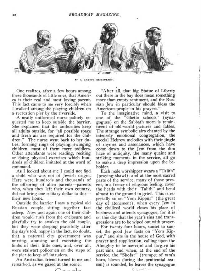 An Australian friend turned to me and remarked, as we gazed at the scene : “After all, that big Statue of Liberty out there in the bay does mean something more than empty sentiment, and the Russian Jew in particular should bless the American people in his prayers.”