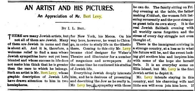 • May 1905, Bert gets story in major American Jewish paper.