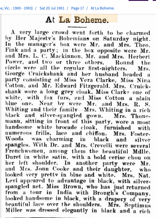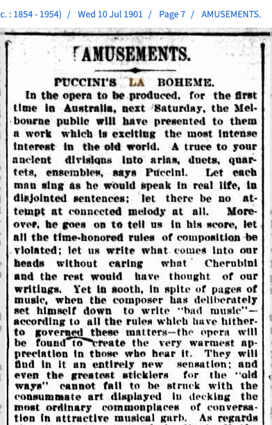Bert may have seen the opera when first performed in Melbourne in July 1901. He had just returned to Melbourne after 18 months in Bendigo. The Age newspaper previews the performance, no doubt taking in the ‘PR blurb’ given to them by the promoters.