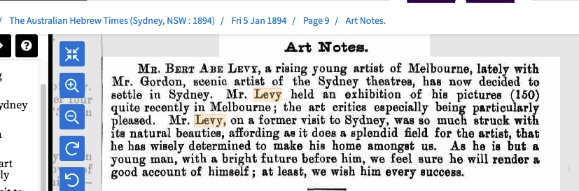 Within 7 months we see the first newspaper clipping on young Bert informing, he is pulling up stumps to live permanently in Sydney. The article below references an exhibition held in Melbourne of 150 of Bert’s items prior to departure to Sydney. A scan of Trove and the newspapers in Melbourne of 1892/93 has no mention of any exhibition !!! Maybe Bert ‘gilded the lily’ or the Sydney Hebrew Times reporter misinterpreted what he said ?