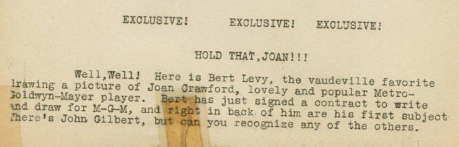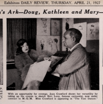 You may recall an earlier post of a 1927 photo of Bert sketching actress Joan Crawford for her latest film, Taxi Dancer. Bert had just signed with MGM studios and had moved to Los Angeles. Here it is again,