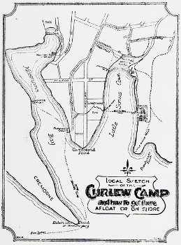 ‘This is the site of the original Curlew Camp. The camp was established by Reuben Brasch; a clothing manufacturer who moved to Sydney from Melbourne in 1875. Brasch’s store was located on a city corner on Oxford Street opposite Hyde Park and soon became known as ‘Brasch’s corner’. Reuben and his family would frequent this place for holidays, rowing across from Parsley Bay, Vaucluse, eventually establishing a permanent camp here. Reuben became known as the ‘father’ of the camp and this title was then passed down to his sons as he aged.