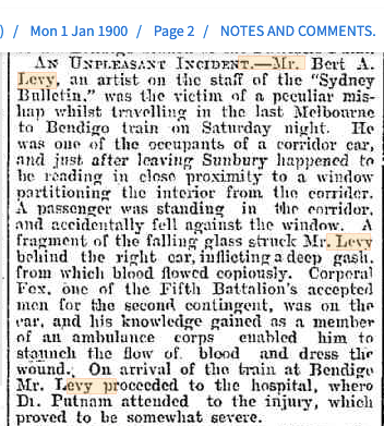 Bendigo Advertiser Here he is, before he sailed for his second stint in Boer War in South Africa with the 2nd Victorian Mounted Rifles in February 1902. He had already served over there for 17 months and was on leave, returning to Bendigo when he attended Bert’s wound. Being a saddler may have also aided some good stitching work if required on Bert’s wound. Small world. Bert was the editor of the ‘Bendigonian Supplement’ just prior to this. Unfortunately the Bendigonian at this time has not been digitised by Trove so photo can’t be shown, yet.