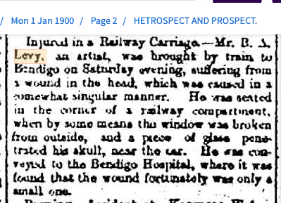 Bizarrely Bert chose to travel to Bendigo on Saturday December 30, 1899. (a fairly momentous week in the young Colony as it heralded a new century) He may been fronting for a job interview before the key people went on an extended New Year holiday ? It looks like he traveled alone, possibly leaving Harriet and Alwyn (now 4) with family in Melbourne. His arrival in Bendigo was not without incident.