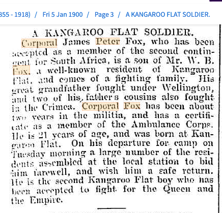 Who was the man who possibly saved Bert’s life or at the least, dressed his wound. Kangaroo Flat lad, Corporal Peter Fox. He was actually James Peter Fox.