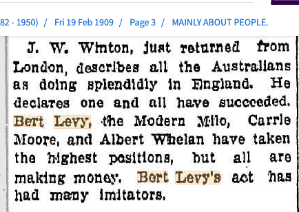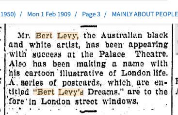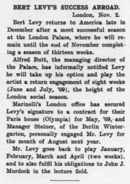 Bert toured extensively across the major cities of the USA in 1906 and 1907 and in 1908 he took another chance, taking himself off to London……..