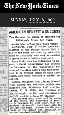 Despite being engaged to perform before Royalty on July 21st 1909, Bert went ahead with the Benefit Concert to raise money for the children of London’s East End five days earlier.