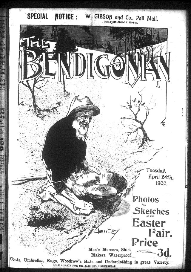 A month after arriving in Bendigo, he depicted its most famous and wealthiest identity, ‘Quartz King’ Sir George Lansell in a cheeky and risible sketch for the Bendigonian Supplement. This impudent representation of one of the richest men in the British Empire as well of other local notables, imbibed widespread affection among his readership..