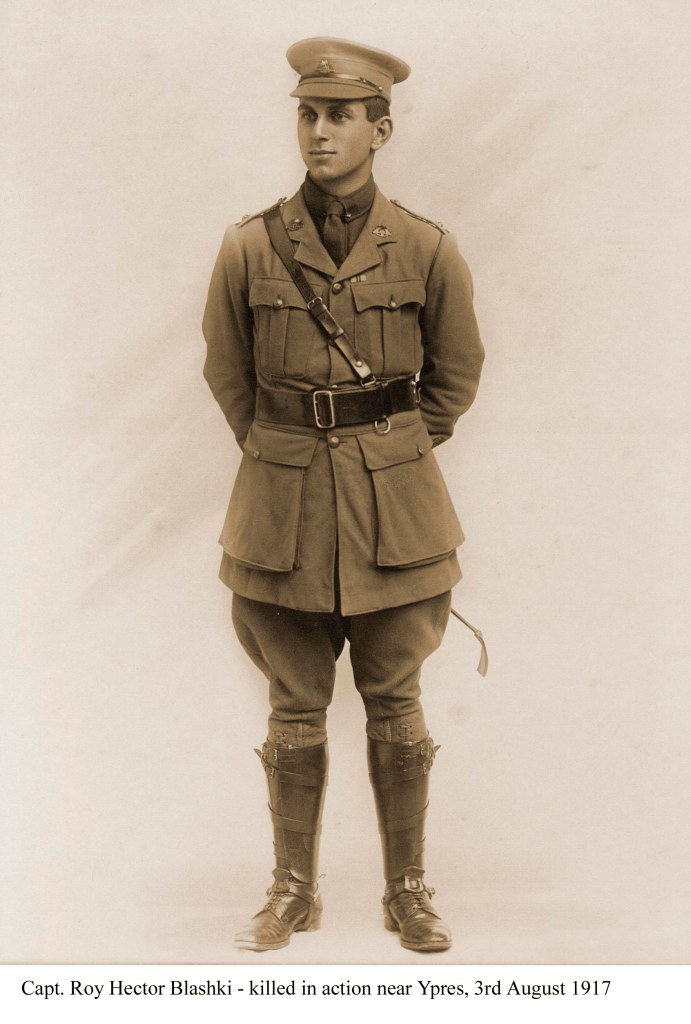 Bert and Harriet had also lost another another nephew 8 months earlier in August 1917 in Captain Roy Blashki from Sydney. Roy was the son of Minnie Waxman, Harriet’s elder sister. Captain Roy Blashki (photo below) had been ‘Mentioned in Despatches’ twice for bravery in late 1916. Here is his bravery recommendation from 1916. https://www.awm.gov.au/collection/R158564 He was killed at the terrible battle at Menin road, Ypres in Belgium.