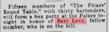 Bert on Friar’s program at benefit for ‘Underprivileged Boys Fund’ in 1919.