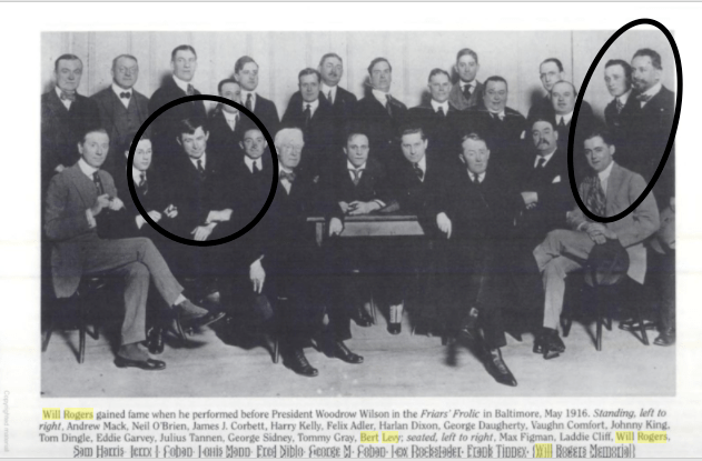Here’s a photo of Will Rogers and Bert who were part of the entertainment for President Woodrow Wilson at the Friar’s Frolic in Baltimore May 1916.