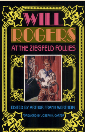 Photo from Roger’s book- Will Rogers at the Ziegfeld Follies – Cover below. The book seems to be a reproduction of all the one line jokes Rogers used in his shows.